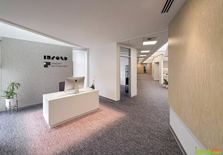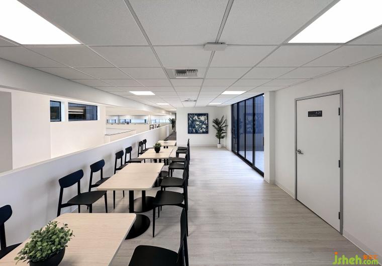 The space features an L-shaped layout, brought to life through the integration of vertical double-height areas and natural lighting. In the corridor, interior windows allow natural light to flow in, enriching the corridor's visual depth and sense of layering. Additionally, the double-height design above the corridor lets sunlight cascade from above, creating a dynamic play of light and shadow that shifts throughout the day. This approach not only enhances the brightness of the space but also improves the overall transparency of the office, providing employees with a bright and comfortable working environment.