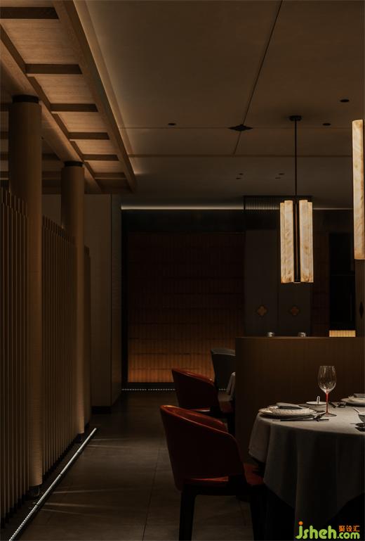 餐廳設(shè)計(jì)延續(xù)京味文化的對(duì)稱性,舒適的半圍合卡座區(qū)域,靜謐的燈光氛圍,讓食客們可以在其中小酌,也可以肆意大醉,一切顯得那么愜意。