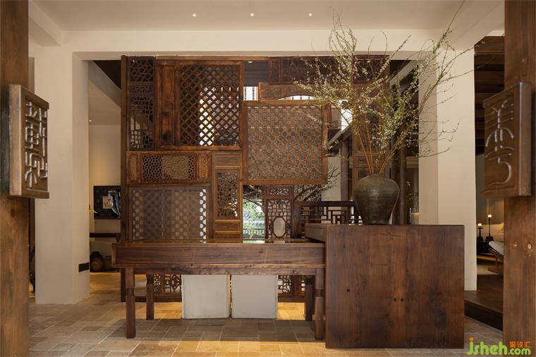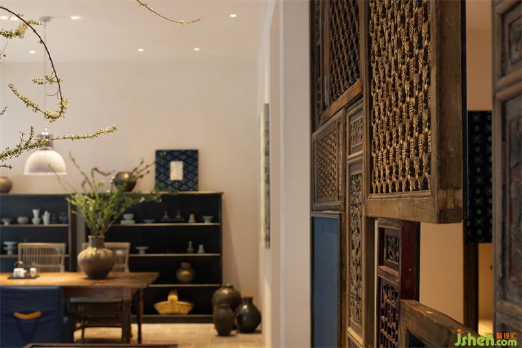 進(jìn)入室內(nèi),由設(shè)計團(tuán)隊走訪各處,找尋獨具歷史特色的雕花窗格,并將其銜接,趨近統(tǒng)一的色彩勾勒,若有若無的白紗遮面,民宿設(shè)計演繹全新的前廳屏風(fēng),空間虛實之感緩緩溢出。