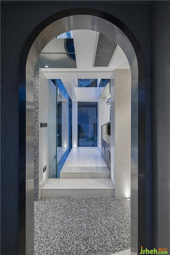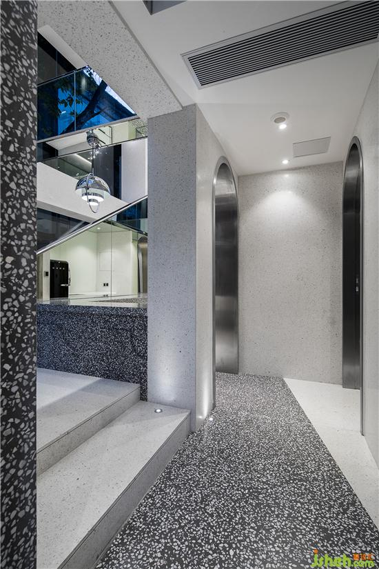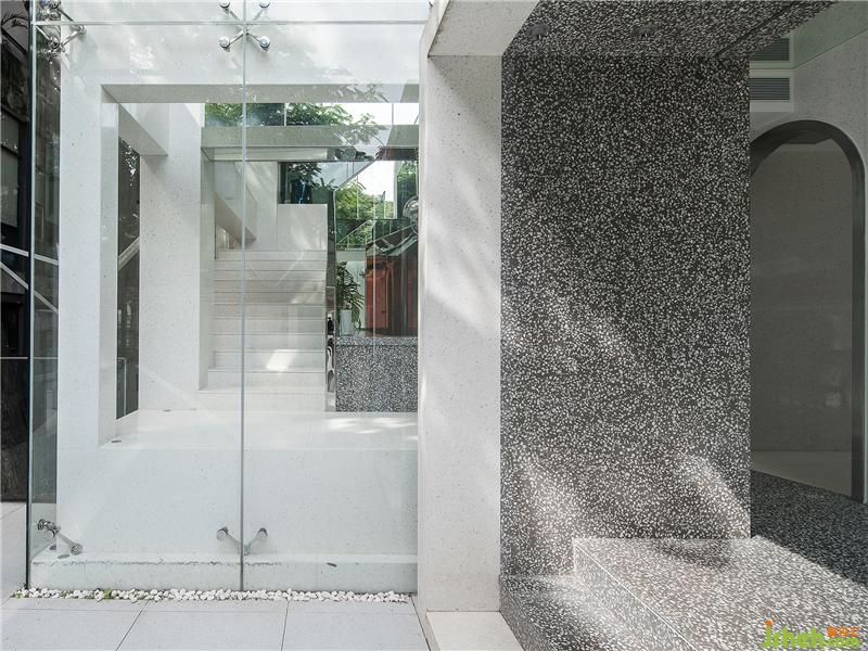 ▼ 水磨石、不銹鋼、玻璃三種現(xiàn)代材質(zhì)之間的對話