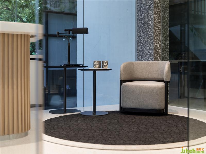 The open round door is wrapped with stainless steel to add senses of style, forming an open and smooth moving line. A semi open wall is set between the office and the window to enhance air convection and defuse space constraints.