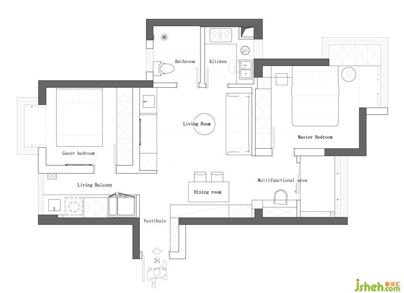 套內(nèi)使用面積不足60平,有限的空間內(nèi),需要滿足三居室功能的空間布局,營造一個(gè)有品位、舒適且能滿足大小收納的居家空間。