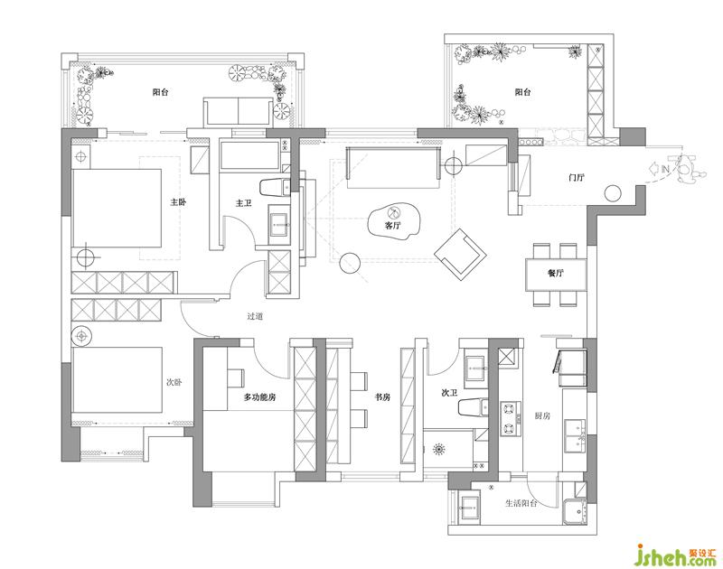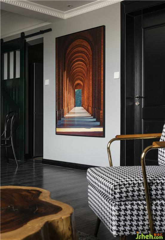 客餐廳延續(xù)暖色老木板元素,整個空間采用了質樸的棕色,紅色同色系作為輔助色,墻面采用灰色為主調,轉換空間畫面的同時,隨著光影變化,讓空間更具沉穩(wěn),過道處充滿藝術氣息的掛畫,更給空間帶來了藝術氣息。