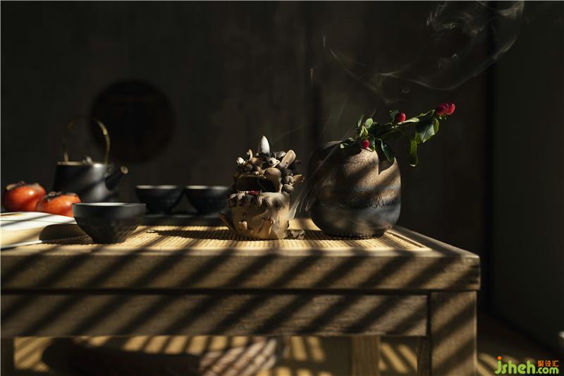 多功能間中式衣柜門把手,暖色系編織墊,精致的茶具,回流香在光影的映射下,格外溫暖,愜意。見(jiàn)此場(chǎng)景一副電影畫面感涌然腦海:盤腿對(duì)坐,你端茶,我看書,回流香 飄散于畫面中,安靜中有舒坦,生活中有愛(ài)情。