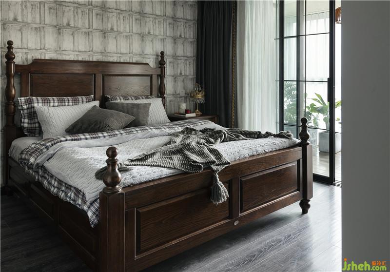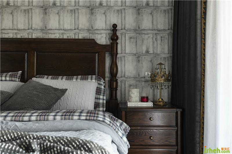 主臥整體以平穩(wěn)的弱對(duì)比為主,與次臥室形成鮮明的對(duì)比,更顯沉穩(wěn)。床頭背面灰色的復(fù)古墻紙,彰顯男女主人的懷舊情懷。
