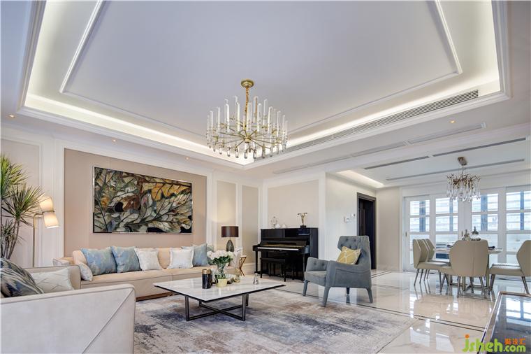 大面積清新的白、搭配淺灰藍(lán)地毯和裝飾畫牽引出歐式輕奢浪漫情韻,奠定客廳優(yōu)雅溫馨的基調(diào)。以淺色為主色調(diào),用少許亮色進(jìn)行點(diǎn)綴。使空間在和諧統(tǒng)一的基礎(chǔ)上更具視覺(jué)層次感,為空間平添幾許溫度與生機(jī)。歐式輕奢風(fēng)格往往會(huì)添加簡(jiǎn)潔曲線家私結(jié)合方正矩形及幾何框架的造型,使整個(gè)設(shè)計(jì)變得剛中有柔、恰得好處。用簡(jiǎn)約淡雅的裝飾突出品味,提升空間的藝術(shù)感,創(chuàng)造出輕奢化的歐式浪漫。水晶吊燈灑下華麗的光影,布藝沙發(fā)與石材茶幾剛?cè)岵?jì)彰顯典雅與時(shí)尚。少量的金屬色與淺色的空間色彩,優(yōu)雅里突顯了小小的浪漫。一些精致的花藝、茶具、無(wú)意間使整個(gè)空間更為親切鮮活,細(xì)節(jié)中盡顯設(shè)計(jì)師的匠心美意。以簡(jiǎn)約來(lái)突顯品質(zhì)感,整個(gè)空間縈繞優(yōu)雅沉穩(wěn)的氣息。窗外節(jié)奏如常,屋內(nèi)緩慢安寧,人生如一杯沒(méi)有加糖的咖啡,喝起來(lái)是苦澀,回味卻有久久不能退卻的余香。