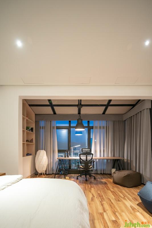 室內(nèi)設計師將二樓斜頂房間采取斜面吊頂形成一個可以自然通風的隔熱層,陽臺用玻璃陽光房的形式拉大使用空間,塑造俯瞰無敵江景的情調(diào)。
