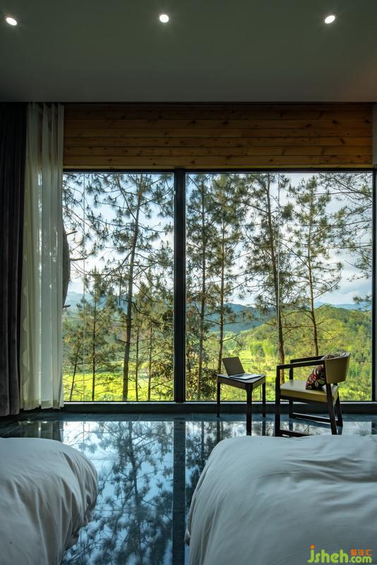 客房采用衫木與大理石的混搭,獨(dú)特的全景觀賞成為每間客房獨(dú)一無二的風(fēng)景,月光淺淡,山林里被勾勒出一片深深淺淺的黯綠,夜空星光點(diǎn)點(diǎn),枕星辰入眠,說的就是這般吧!