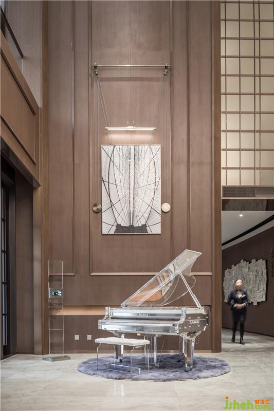高聳有序的半透書架、通透的琉璃藝術(shù)玻璃提升了接待區(qū)的儀式感;與金屬裝置相結(jié)合的藝術(shù)掛畫、超現(xiàn)代的獨(dú)特透明設(shè)計(jì)的KAWAI鋼琴、呼應(yīng)著雕塑家Lynn Chadwick 林·查德偉的《穿斗篷的步行者》一系列的雕塑作品,契合美學(xué)生活博物館的主題,漫步在書海中,傾聽著音樂,讓快節(jié)奏的城市生活,慢下來...