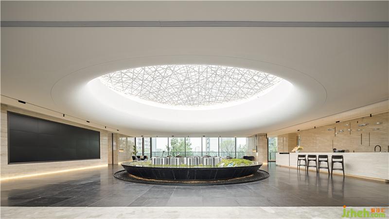轉(zhuǎn)動著的沙盤,連接山水和天地之間,與洽談區(qū)的家具相互呼應(yīng),在有限的空間里,蘇州售樓處設(shè)計不斷的蜿蜒流轉(zhuǎn)、生生不息,形成自然與人居空間的滲透循環(huán)。