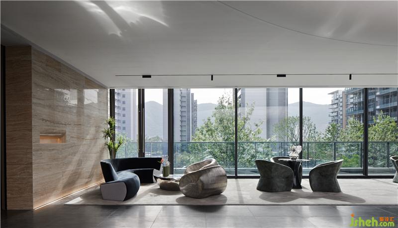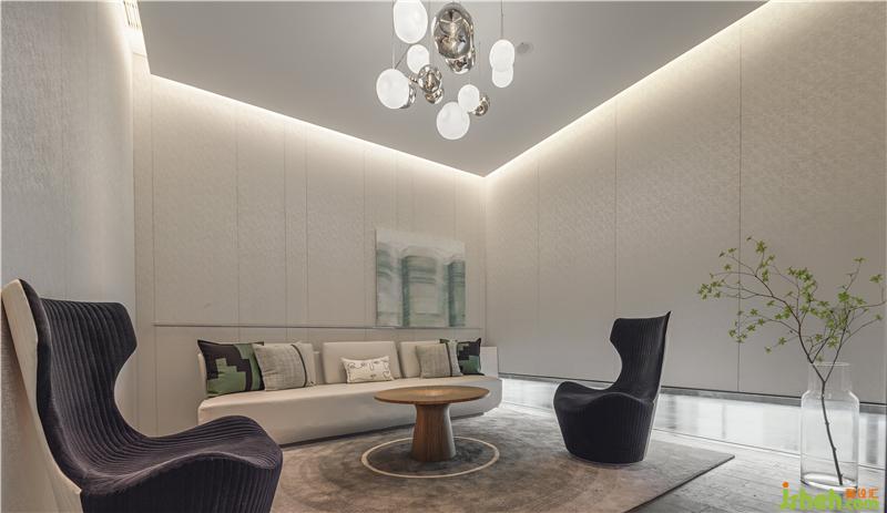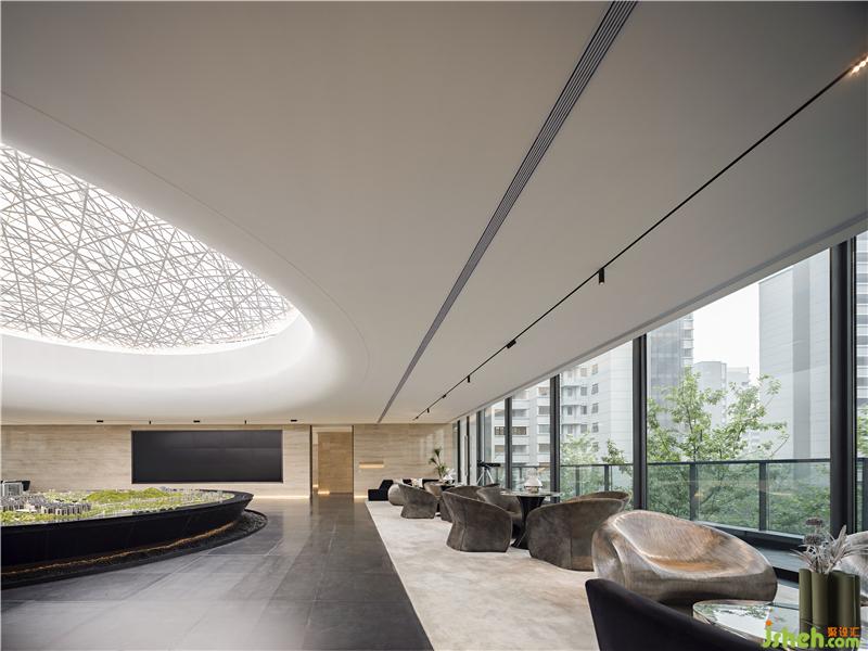 洽談區(qū)整個空間設(shè)計上追求與自然相融合。軟裝家具大量選用自建筑大師扎哈的設(shè)計作品,這也與扎哈一貫的設(shè)計理念相契合。