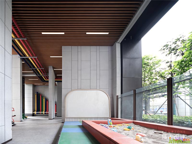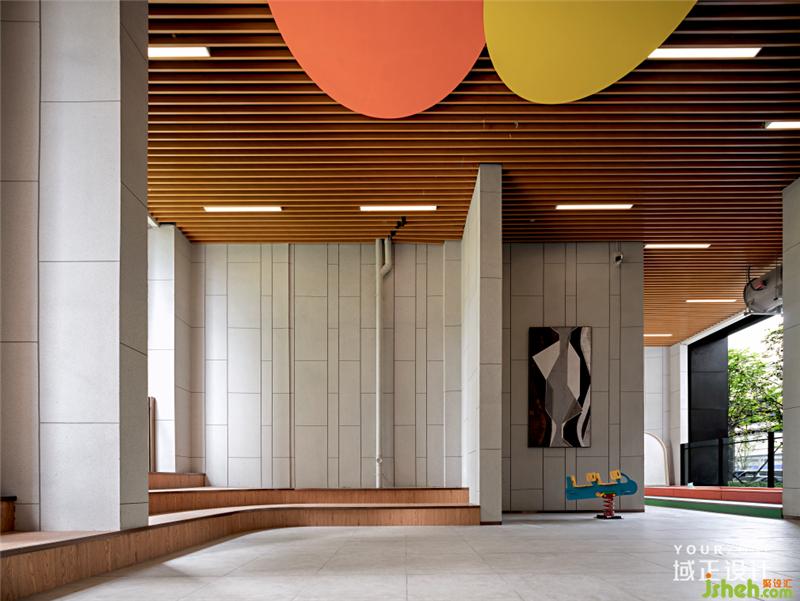 架空層一般都會(huì)受到光線的限制,這時(shí)可以通過色彩來激發(fā)視覺體驗(yàn),把一個(gè)原本糟糕的灰色角落變?yōu)槌錆M娛樂性的活動(dòng)空間,提供一個(gè)有趣的游戲場(chǎng)所。用充滿色彩的方式為孩子們編織出一場(chǎng)五顏六色的夢(mèng)。