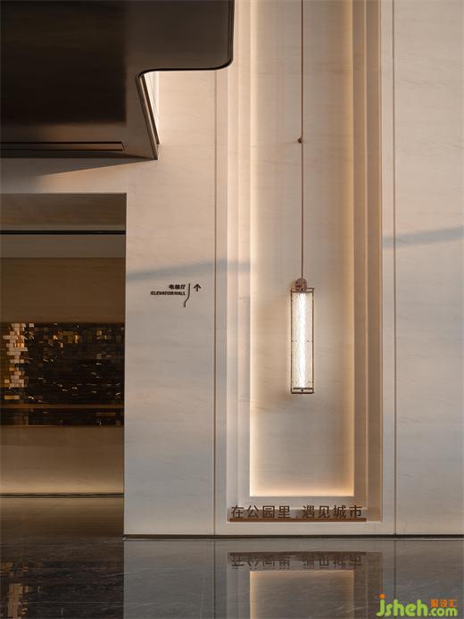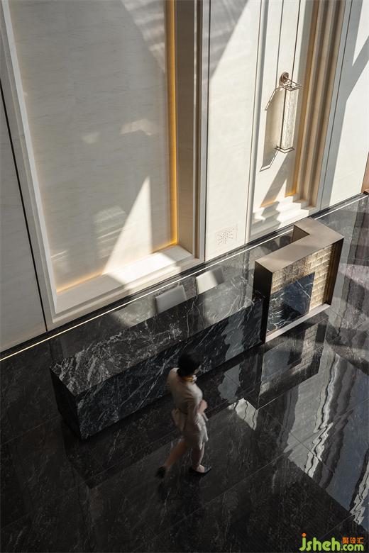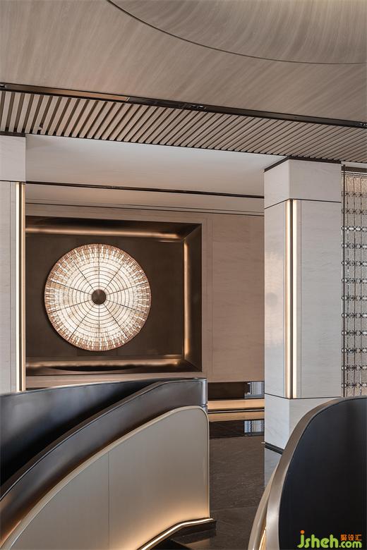 往空間之中深入,接待臺典雅的石紋與內(nèi)斂的支桿金屬組合就像畫卷般令人感到靜謐,壁燈柔和的光源輕柔流暢的從身上落下,照亮接待臺的臺面,正式開啟此次體驗之旅。