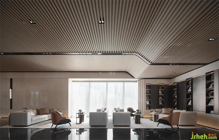 中轉(zhuǎn)廳以雄渾厚重為特色,整體營銷中心設(shè)計自由而嚴謹。身臨其境,感受光線、肌理和空間結(jié)構(gòu),每個角度都充滿了詩意與畫意的美感。