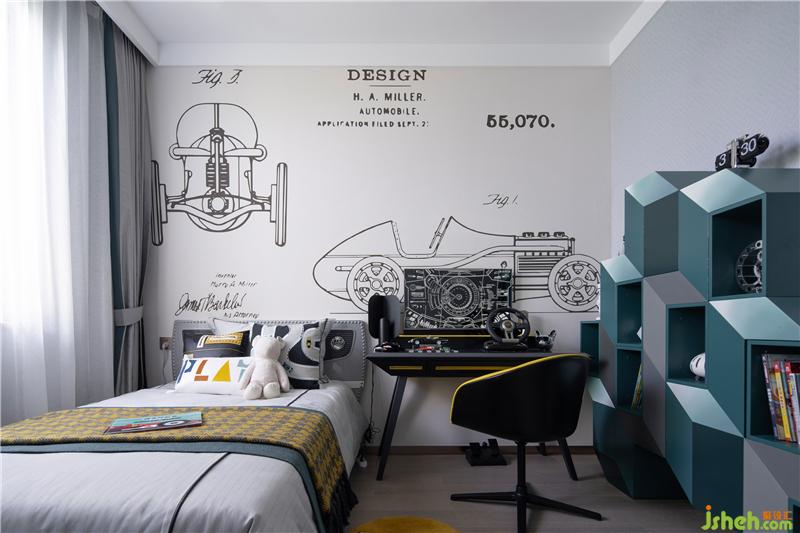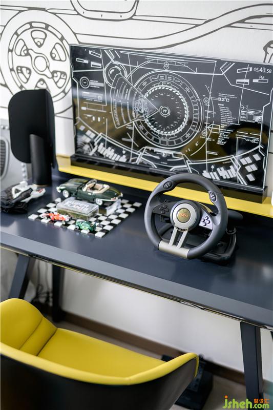 黑色與明黃的碰撞,帶來(lái)成長(zhǎng)與探索的張力,飛行駕駛的情境主題,讓多樣化的成長(zhǎng)在空間中得以圓滿。裝修公司