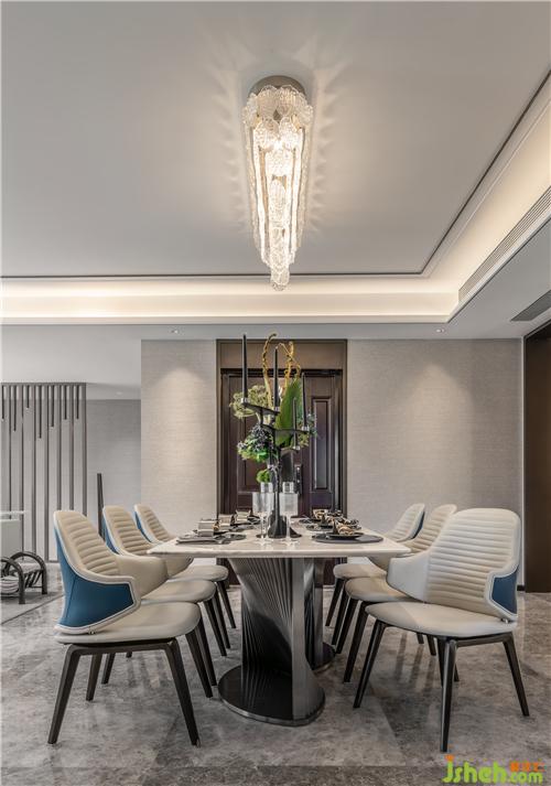 曲線曼妙的燈飾起伏宛轉(zhuǎn)設(shè)定了優(yōu)雅的氛圍,通過(guò)棉麻、原木及皮革的混搭結(jié)合呈現(xiàn)品質(zhì)基調(diào)。