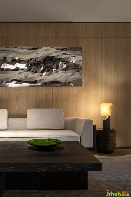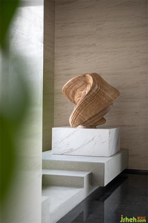 光影漸入,為室內(nèi)平添了一份通透。無處不在的藝術(shù)原木罐,融入又跳脫,表達著順應(yīng)自然的生命力,細致入微,仿若自然而然存在于此。