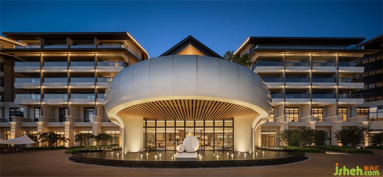 大堂立于山前,遠處群山的輪廓影影綽綽,距離感和朦朧感就像存在于詩歌里的美妙。酒店設(shè)計在這里,我們將“云霧在山林環(huán)繞”的美感狀態(tài)雕刻在空氣里,就像青山前等候的微風(fēng)。