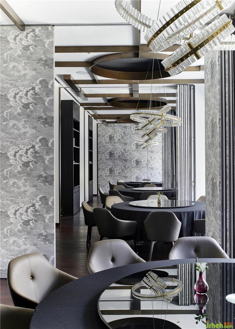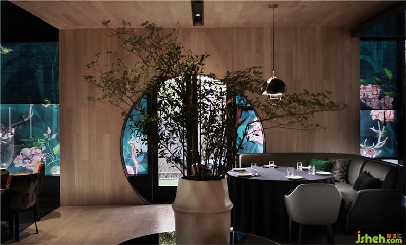 設(shè)計(jì)師用“抽象或具象”的符號(hào)植入進(jìn)每個(gè)不同的包間,以期營(yíng)造一種別具一格的現(xiàn)代東方意境。餐廳設(shè)計(jì)