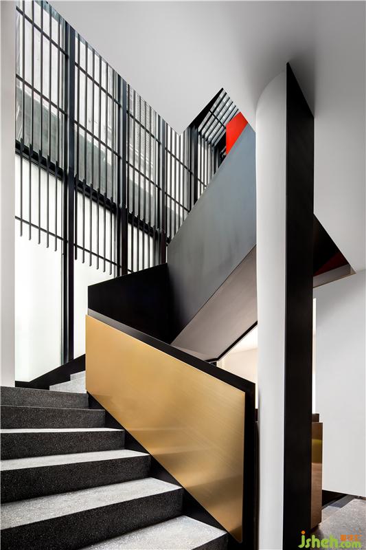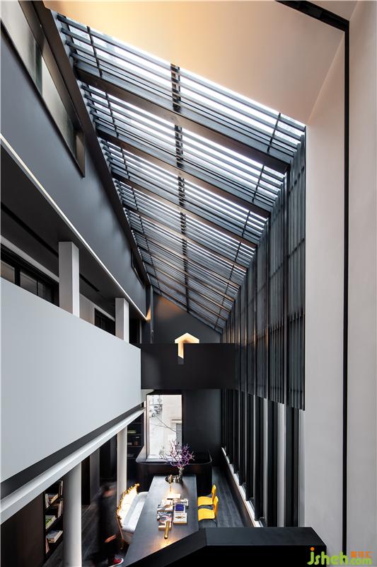 “業(yè)主也可以通過電梯的獨立動線上到樓上空間,跟辦公區(qū)的動線劃有所劃分開來?!八a充道。