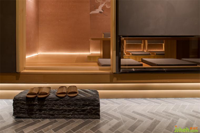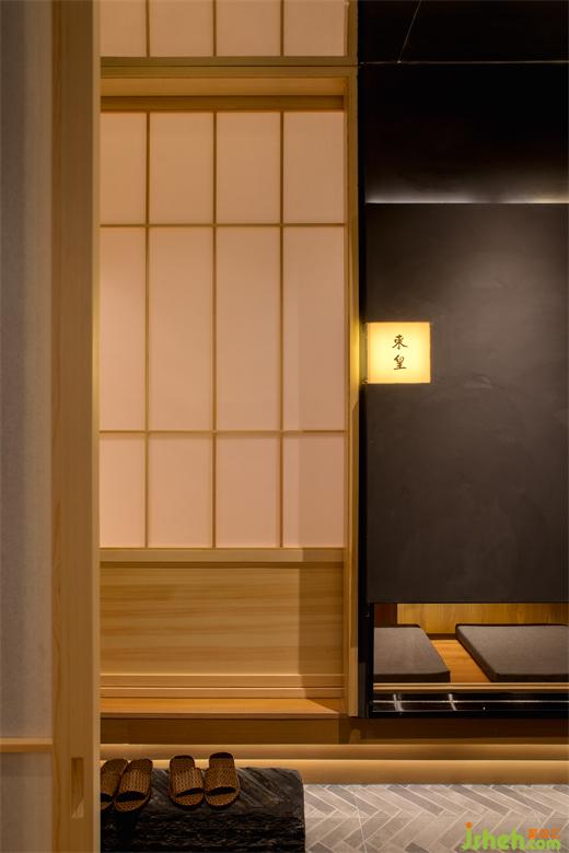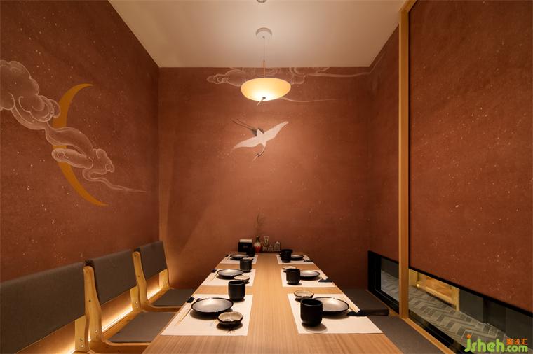 浮云如砂細(xì),半星燈火漏幽微。走進(jìn)包廂,日式傳統(tǒng)的和室風(fēng)格映入眼簾,包廂墻體開(kāi)設(shè)大小不一窗洞,從視覺(jué)上增加空間感。移門(mén)采用障子門(mén),料理設(shè)計(jì)營(yíng)造詫寂之美。包廂采用抽象的浮云形態(tài)吊燈,散發(fā)柔和的燈光,亮如細(xì)砂,通過(guò)窗洞而出成半星微光,溫馨恬靜。