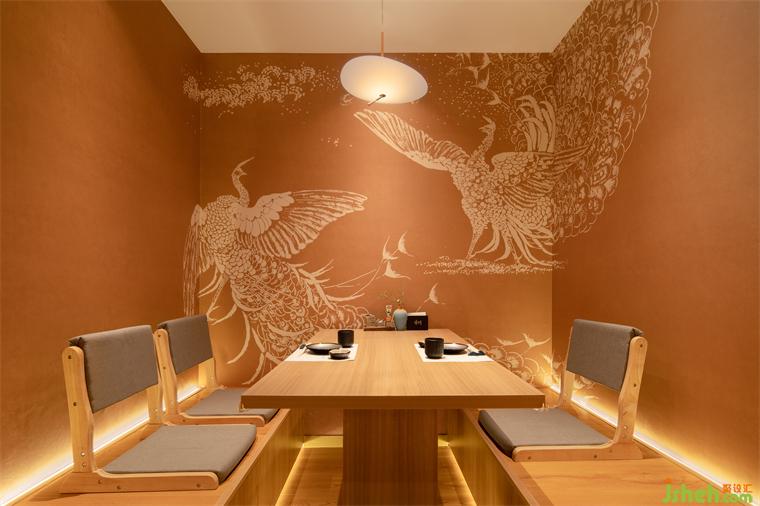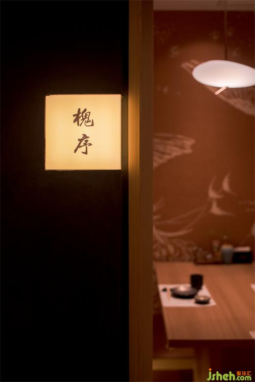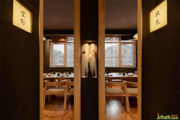 日又名扶光,月又稱望舒,日月如流,交相輝映?!胺龉狻卑鼛c“望舒”包廂之間,料理設(shè)計師做了可拆卸的移門,兩個包廂可合二為一,最大化利用空間。