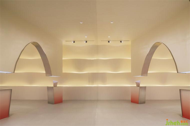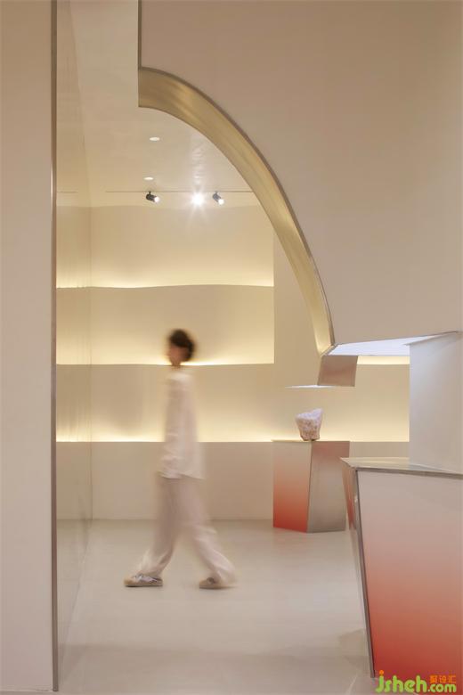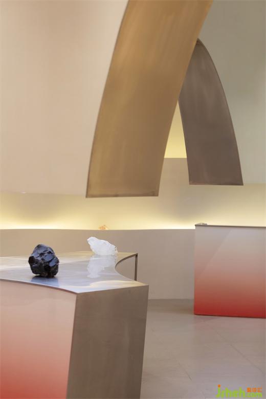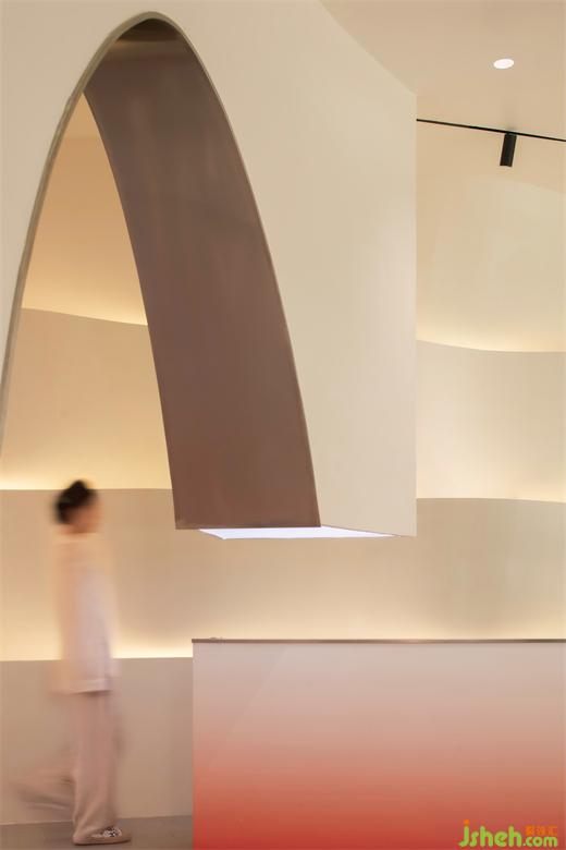 前臺背景墻的波浪體塊造型,則猶如甲油膠滴落時泛起的層層漣漪。