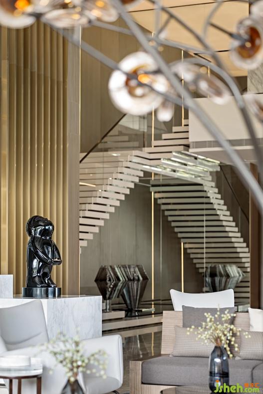 圍合式的休息區(qū),傳達(dá)出輕松氣氛,飾品擺件,不經(jīng)意間彰顯沉穩(wěn)。延續(xù)而來(lái)的藝術(shù)裝置似音符般飄過(guò),點(diǎn)一杯咖啡落座其中,即可享受愜意時(shí)光,落地窗外的景色匯于室內(nèi)形成虛實(shí)對(duì)比。家具造型簡(jiǎn)潔明快、實(shí)用大方,因 “現(xiàn)代主義”的生活哲學(xué)普遍存在于當(dāng)今大眾流行文化中,依靠新材料、新技術(shù)加上光與影的無(wú)窮變化,追求無(wú)常規(guī)的空間解構(gòu),大膽鮮明對(duì)比。強(qiáng)烈的色彩布置,以及剛?cè)岵⑴e的選材搭配,碰撞出獨(dú)一無(wú)二的時(shí)尚。