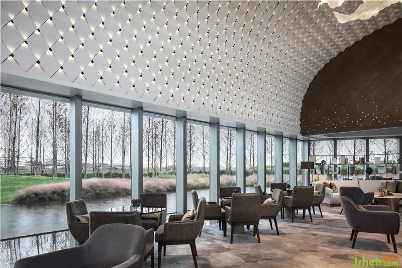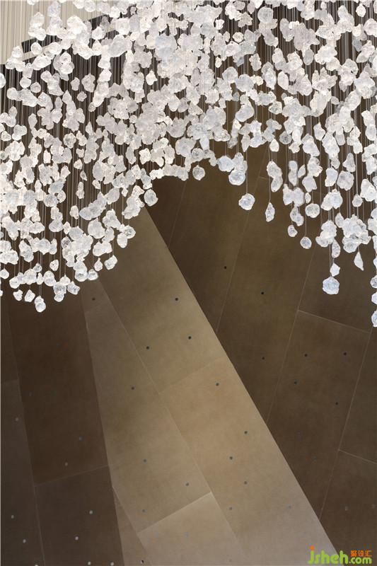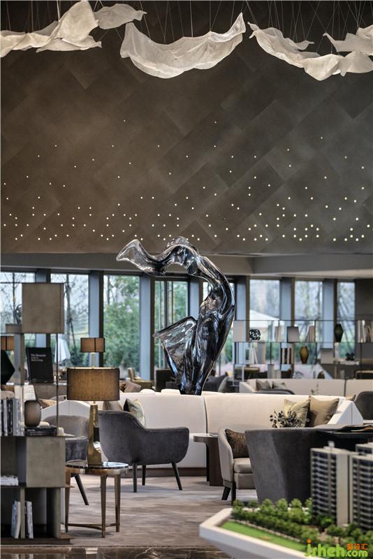 沙盤(pán)區(qū)震撼的菱形拼接裝置延綿而上,躍居于空中,制造一種非凡體驗(yàn)的儀式感,帶來(lái)強(qiáng)烈的視覺(jué)沖擊。為了能讓天花造型裝置完美的落地,設(shè)計(jì)師在最初的設(shè)計(jì)構(gòu)想時(shí),通過(guò)無(wú)數(shù)次各種手工模擬以及磨具制作,最終來(lái)達(dá)到一個(gè)完美的展示效果。菱形造型序列疊加而上,釋放出更多彩更美妙的空間感受和空間秩序。加載燈光變換,點(diǎn)綴那深邃遼遠(yuǎn)的云朵般藝術(shù)吊飾,拖曳著一條極燦爛的光束,恰似一條美麗的長(zhǎng)翎。在這里,沒(méi)有雜亂的裝飾,沒(méi)有無(wú)中生有的變化,有的只是輕盈通透、徜徉流動(dòng)。設(shè)計(jì)的統(tǒng)一性和完整性,讓室內(nèi)室外、動(dòng)與靜互動(dòng)達(dá)到一個(gè)巧妙的平衡。