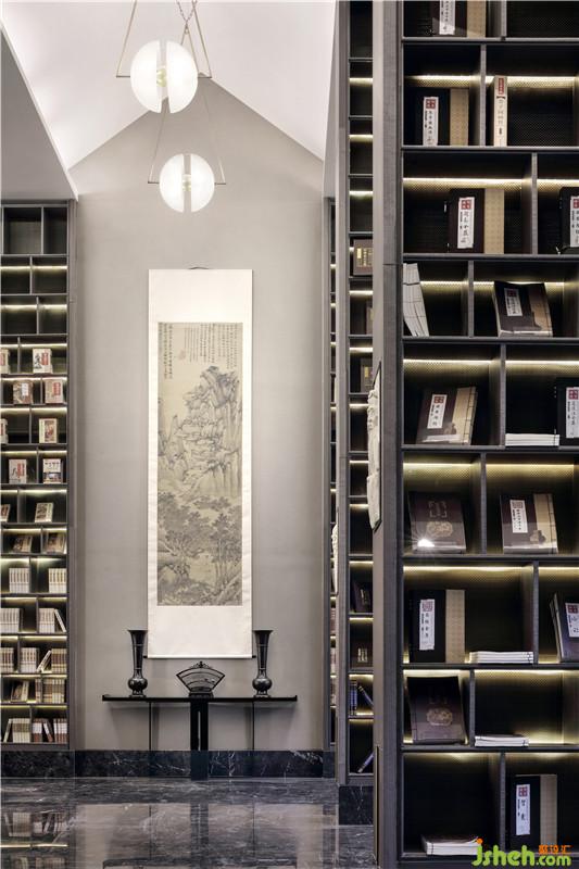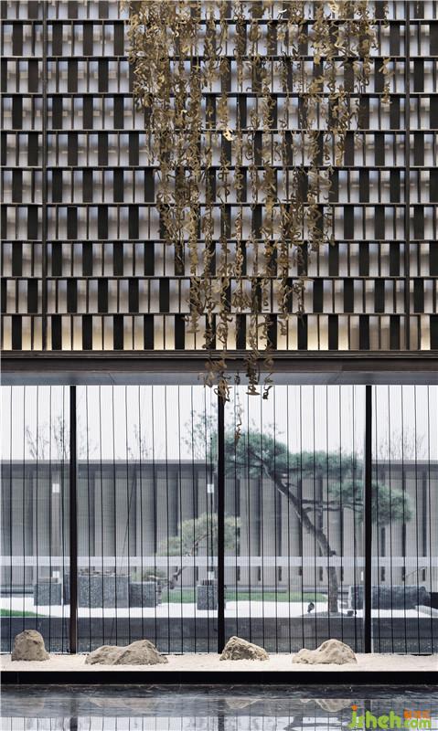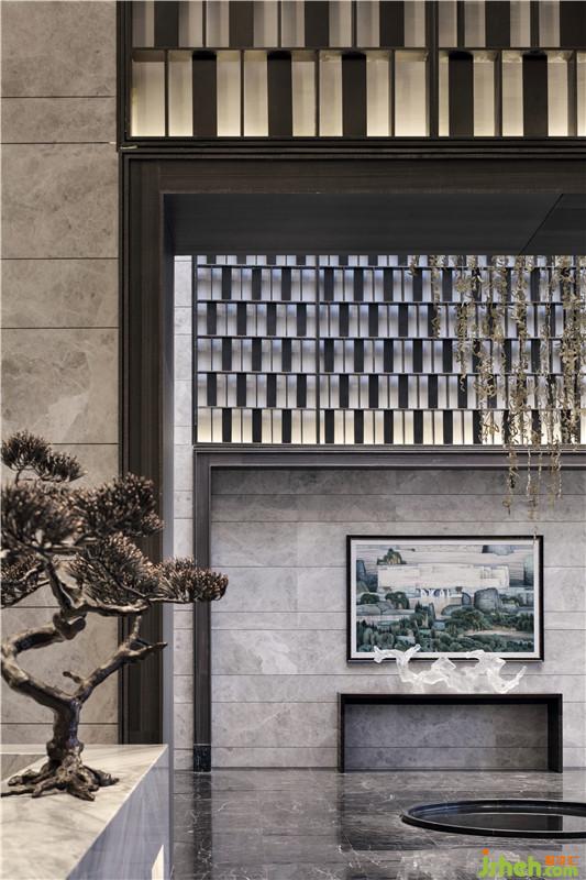 雄偉之氣在于追訪古韻。接待前廳縱深空間的盡頭是裝飾有汗青鎧甲的背景墻,既延續(xù)春秋戰(zhàn)國(guó)文化,又?jǐn)[脫青銅器的一味厚重,其上點(diǎn)綴山石造型,硬朗大氣中透露出現(xiàn)代主義的自然流暢。