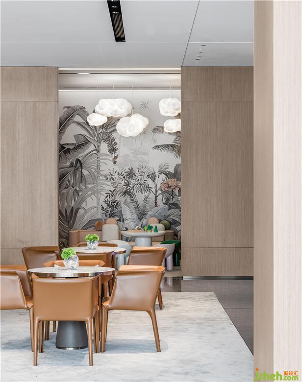 含蓄而內(nèi)斂的橘色彰顯出低調(diào)的氛圍與品位,寧?kù)o的色調(diào)中透著從容不迫,柔軟的布藝和細(xì)膩的皮革、大理石和木質(zhì)、玻璃和金屬、不同材質(zhì)的相融合,達(dá)成柔和的微妙觸感,展示中心設(shè)計(jì)提升了整體空間的品質(zhì)和精致細(xì)節(jié),從而的發(fā)揮出無(wú)限的魅力。