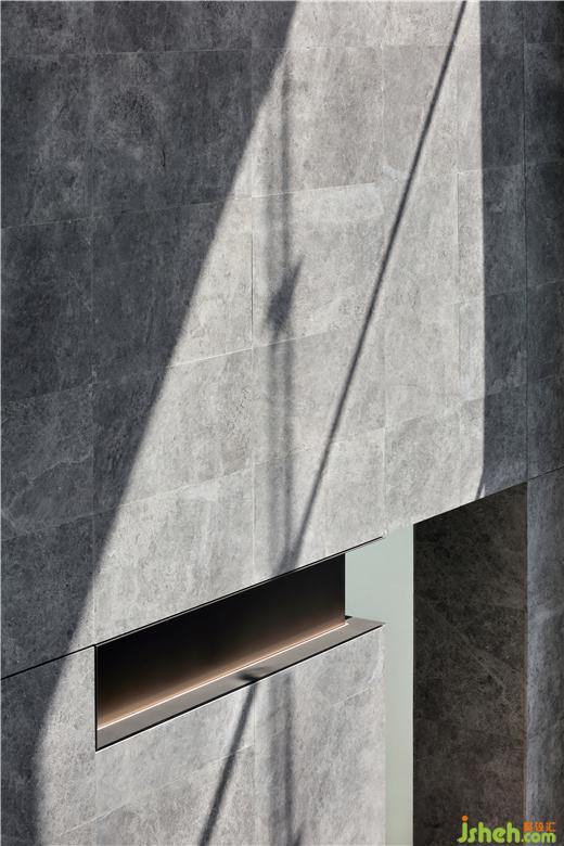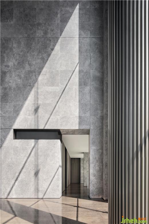 設(shè)計(jì)師從時(shí)尚秀場中受到啟發(fā),擷取了“空靈”這一微妙的元素,從中建立起新空間設(shè)計(jì)。嚴(yán)絲合縫的線條切割與裝飾工藝使空間向兩側(cè)延伸,在門廳處就變得豁然開朗,制造出別有洞天之感。在某種意義上,它將時(shí)間轉(zhuǎn)化為光芒,完全沉浸在線條、角度和明暗的變化中。