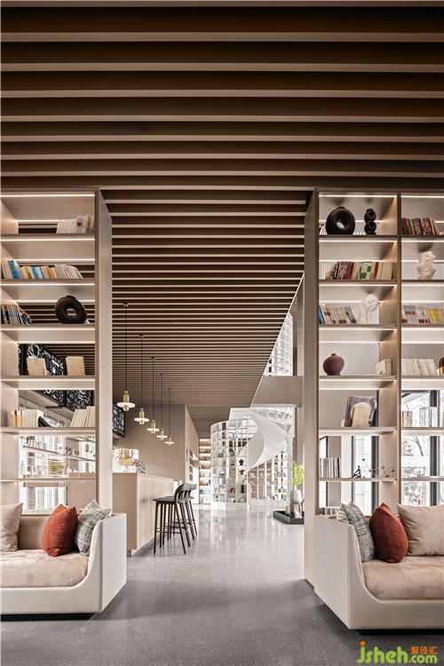 摒棄過于復雜的肌理和裝飾,簡化線條,純粹的閱讀空間干凈而不失趣味,文創(chuàng)店鋪設計喚起人和書之間的精神共鳴。