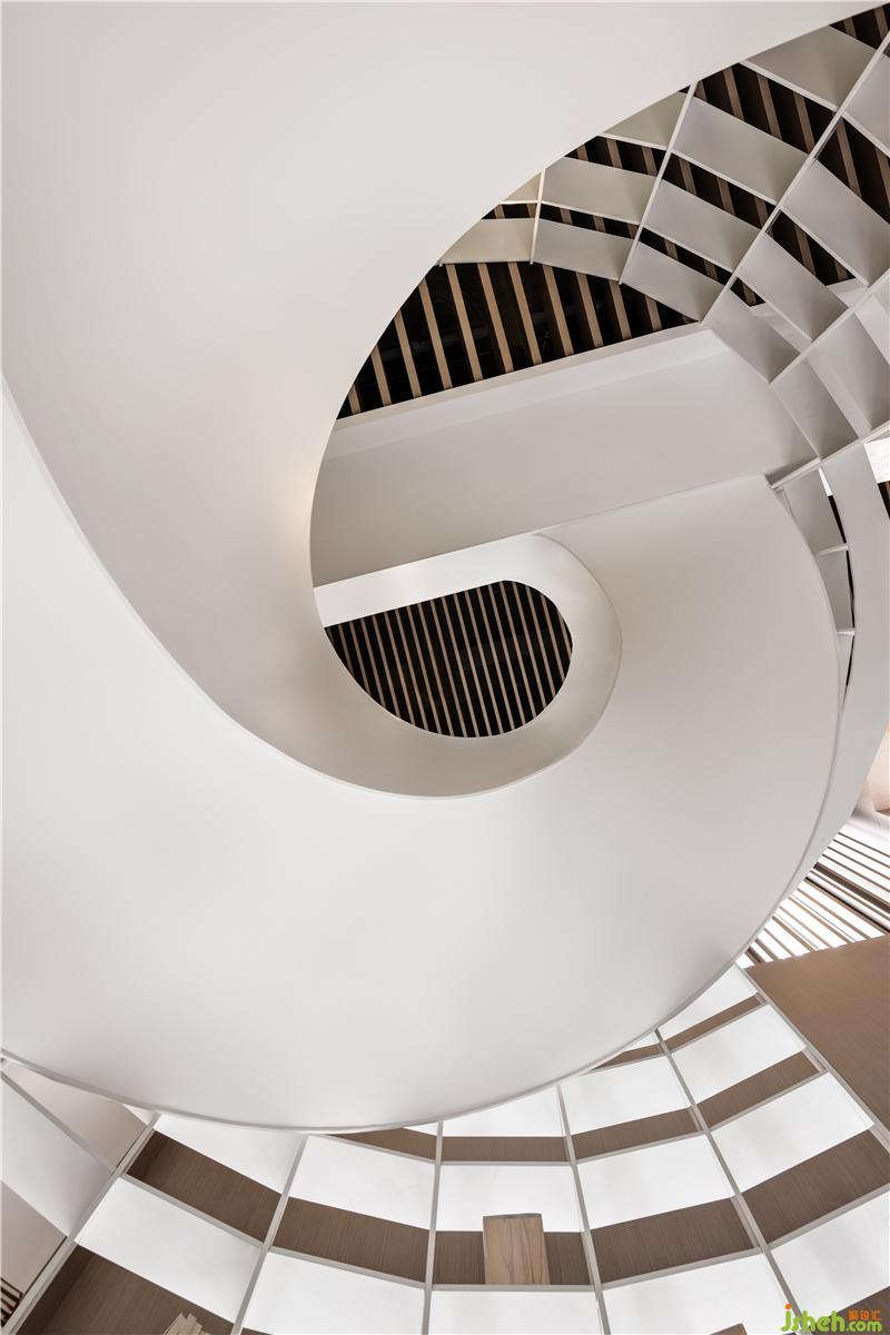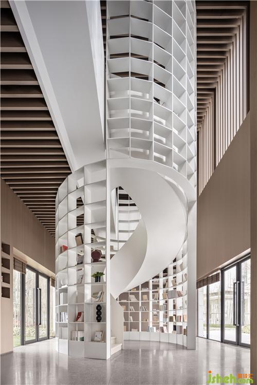 書架造型呈現濃厚書卷氣,藝術樓梯結構棱角分明,文創(chuàng)店鋪設計連接上下兩層,使空間更具延伸與通透感。