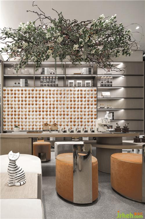 豆圓形立體設(shè)計(jì)元素隨處可見,相互映襯咖啡主題。置身此處,不語香濃,更有回味。