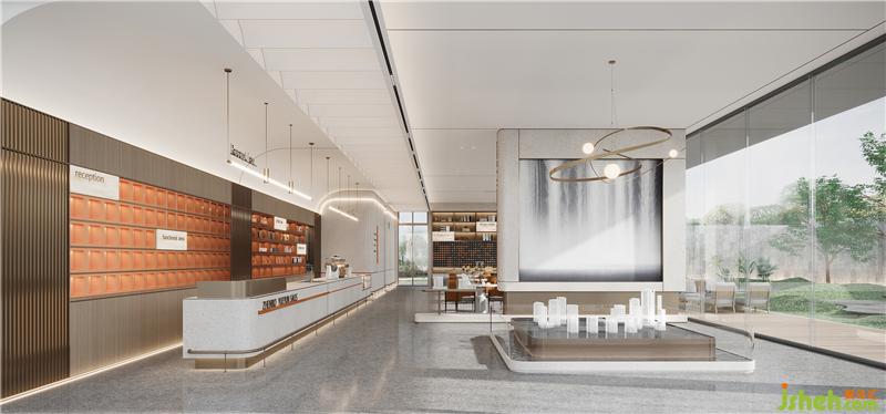 中灰色舒適沉穩(wěn),與室內(nèi)陳設(shè)搭配靜謐安寧,層層疊疊綠意滲透到室內(nèi),南昌售樓處設(shè)計(jì)增添了同大自然一般的清新氣息。