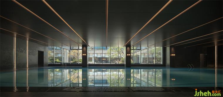 深邃的池水如鏡,倒映著雅致的景致,墻頂一體的啞光鋁板裝飾墻為這片寧靜的空間增添了幾分私密與尊貴。在柔和的燈光與交織下,感受水流的輕撫,遠離塵囂。