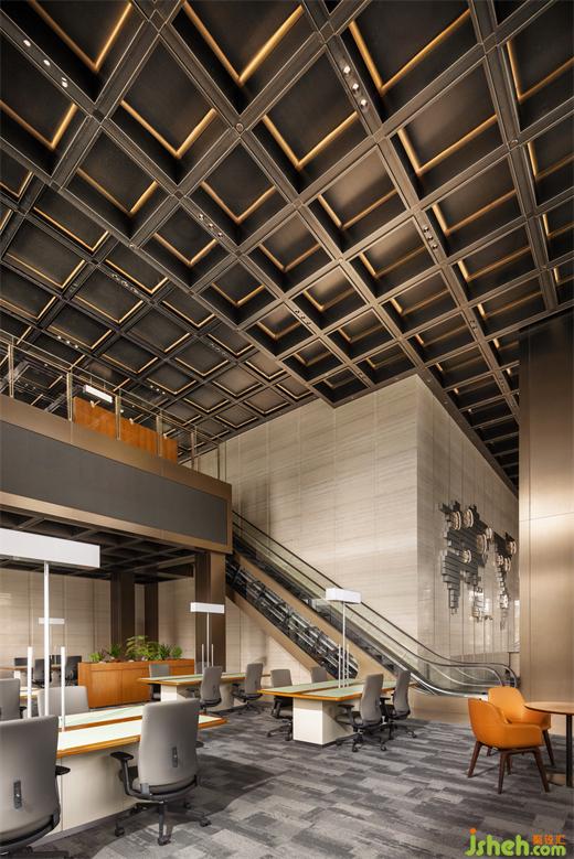 整個空間頂面裝飾靈感來源于“羅馬萬神殿”的穹頂, 米開朗基羅稱它為天使的設計 ,集莊重、 神圣、美觀于一身,這種設計在現(xiàn)為整個交易區(qū)在藝術以外,提供了一種即時的秩序與等級感。