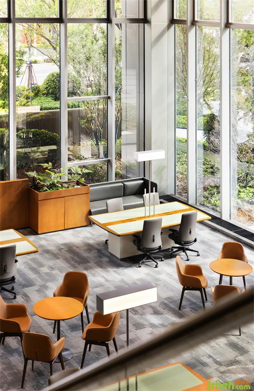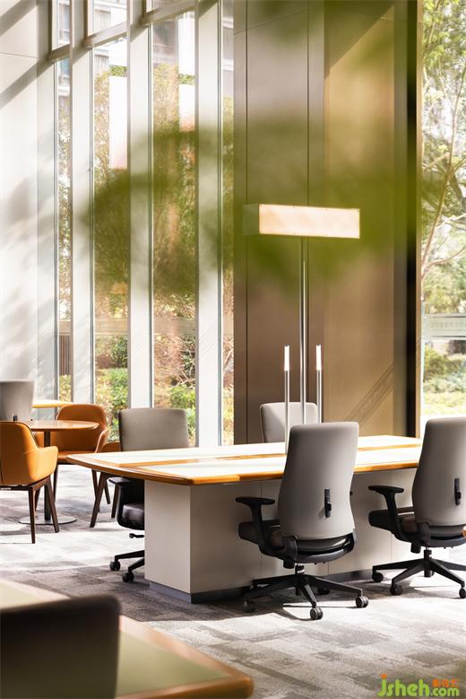 交易中心設計大樓自外向內(nèi)延續(xù)了現(xiàn)代主義的簡潔與高效,簡潔的形體搭配縱貫天地的線條,傳遞現(xiàn)代精工的優(yōu)雅氣質。建筑自身的結構之美與大面積的玻璃幕墻的結合彰顯項目獨特的透明感和輕盈感,確保室內(nèi)得到充分的采光與視野,使空間顯得更加開闊和通透。