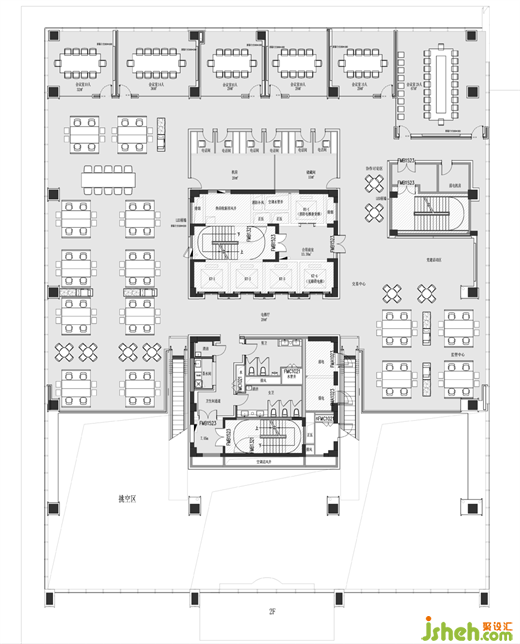 辦公區(qū)內(nèi)的自動扶梯增加了垂直交通的便捷性,還成為了空間中的一個動態(tài)元素,打破了平面的單調(diào)性。