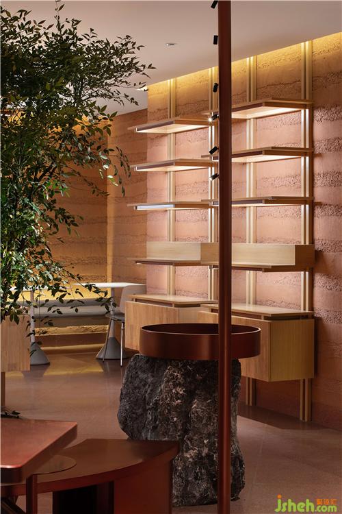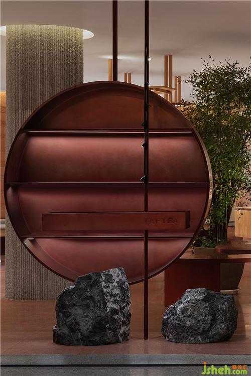 空間以具有80年歷史的大益茶品牌文化為基底,結(jié)合現(xiàn)代都市人的審美喜好和消費習慣,重新定義空間的視覺風格和功能體驗,空間整體設計為暗紅色的基調(diào),好似普洱茶茶湯的顏色,厚重且清透。在眾多零售店中鮮明且突出。