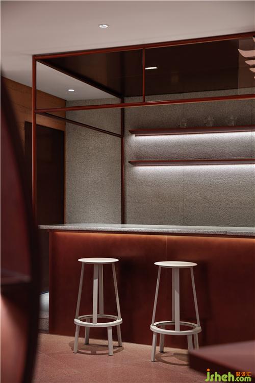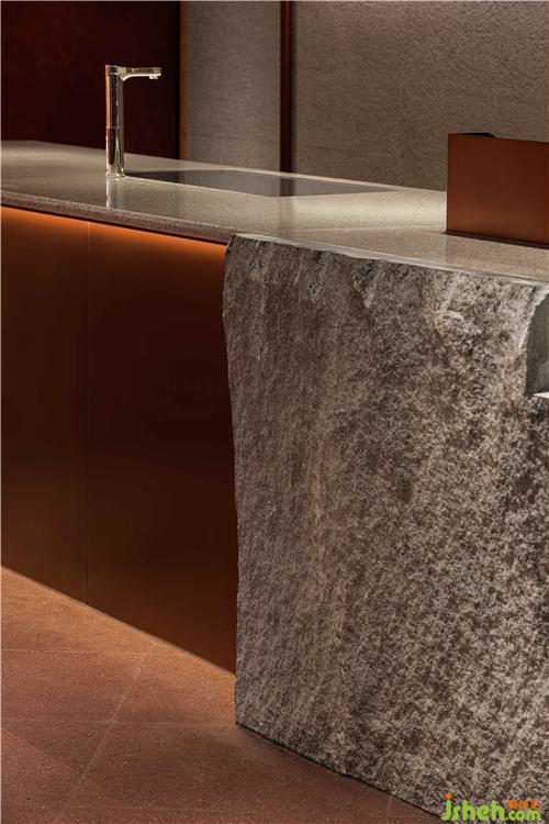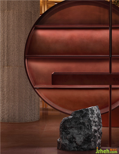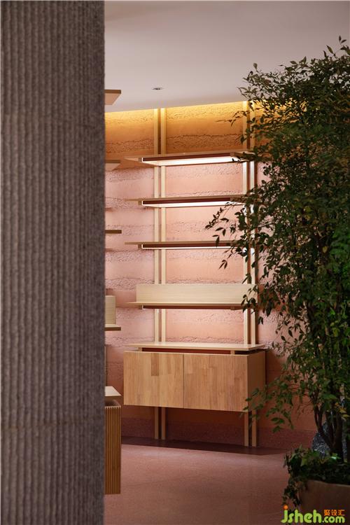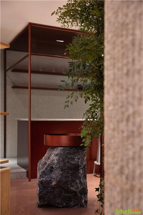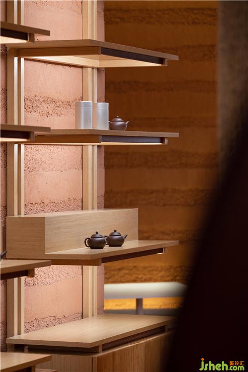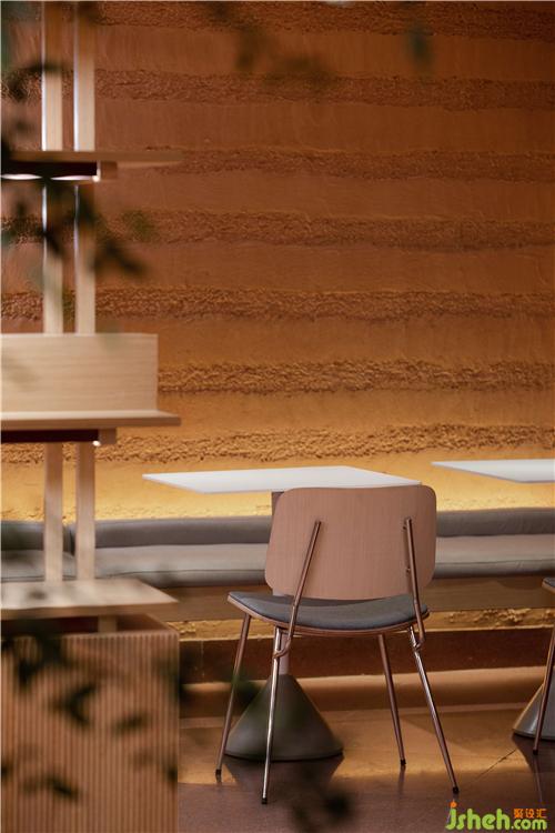 空間中大面積使用自然透氣的紅色泥土,配合細(xì)膩溫潤(rùn)的紅銅,點(diǎn)綴天然樸質(zhì)的原木,徹底摒棄裝飾與華麗,呈現(xiàn)高度真實(shí)且單純的自然之美。