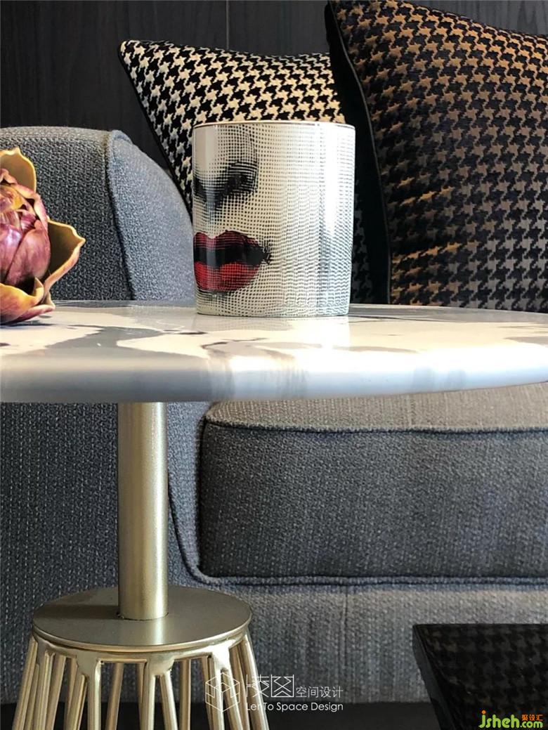 一側通頂灰鏡的融入,在視覺上擴展了空間,與銀色金屬質感的吊燈相互映襯,使得空間整體上更加飽滿立體。