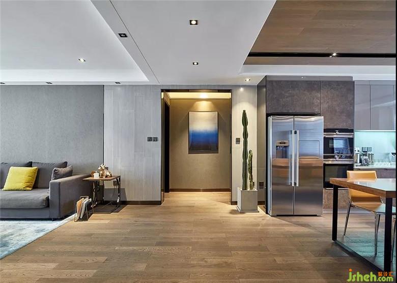 設(shè)計(jì)師經(jīng)過(guò)對(duì)戶(hù)型細(xì)節(jié)上的改造和利用,以及灰色純現(xiàn)代風(fēng)格的定位,使得空間整體上更加趨于合理化、人性化和時(shí)尚感。