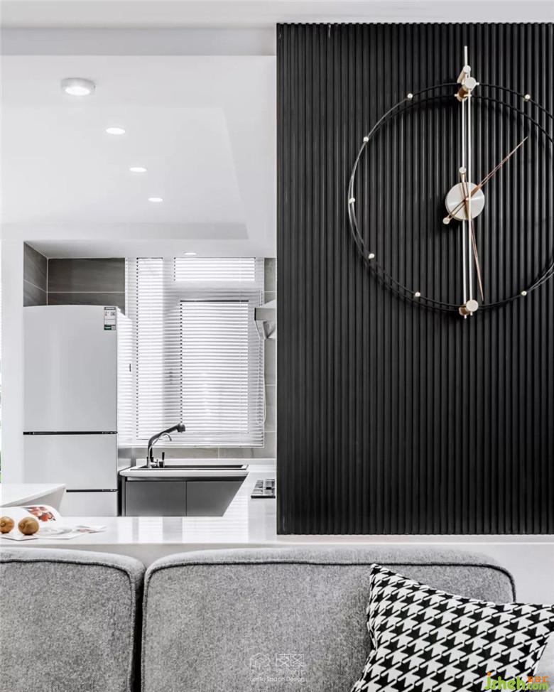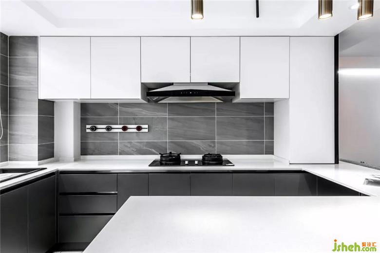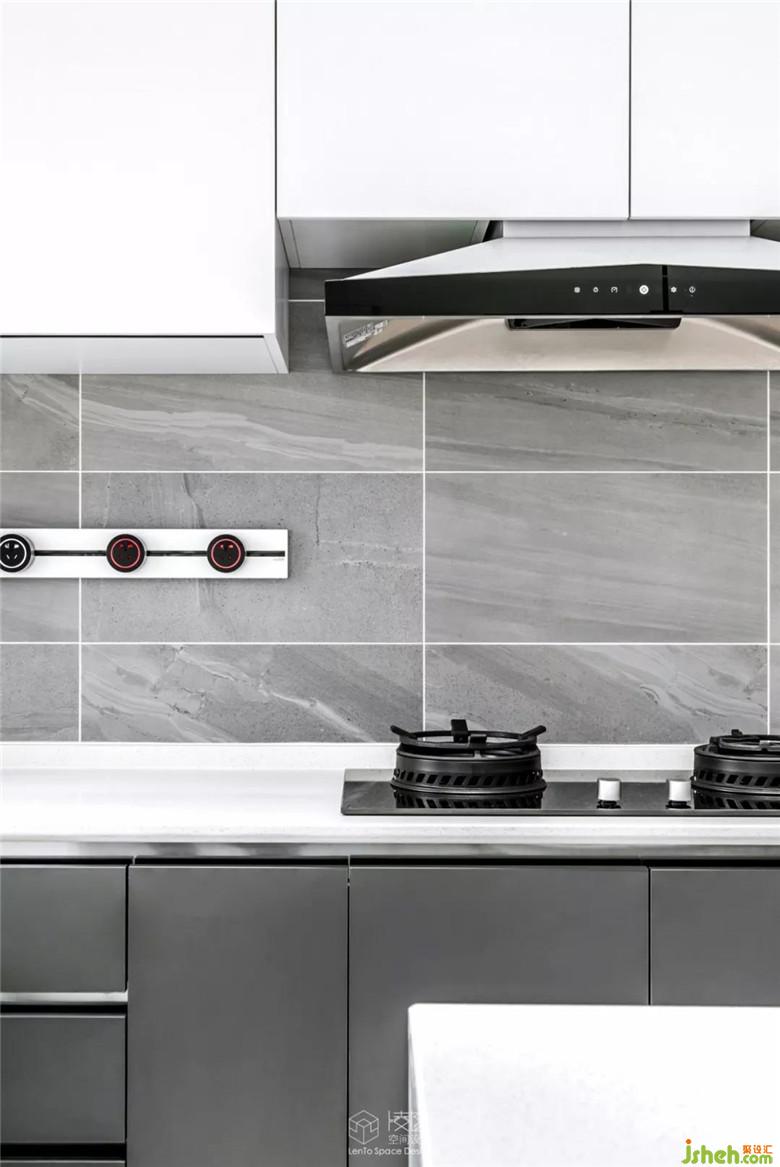 一體式臺面設計,將櫥柜與吧臺串聯(lián)為一個結構整體,各功能部分在基礎色調上達到統(tǒng)一,有效地避免了傳統(tǒng)廚房功能分區(qū)的瑣碎與凌亂,同時解決了餐廳功能缺失的問題。