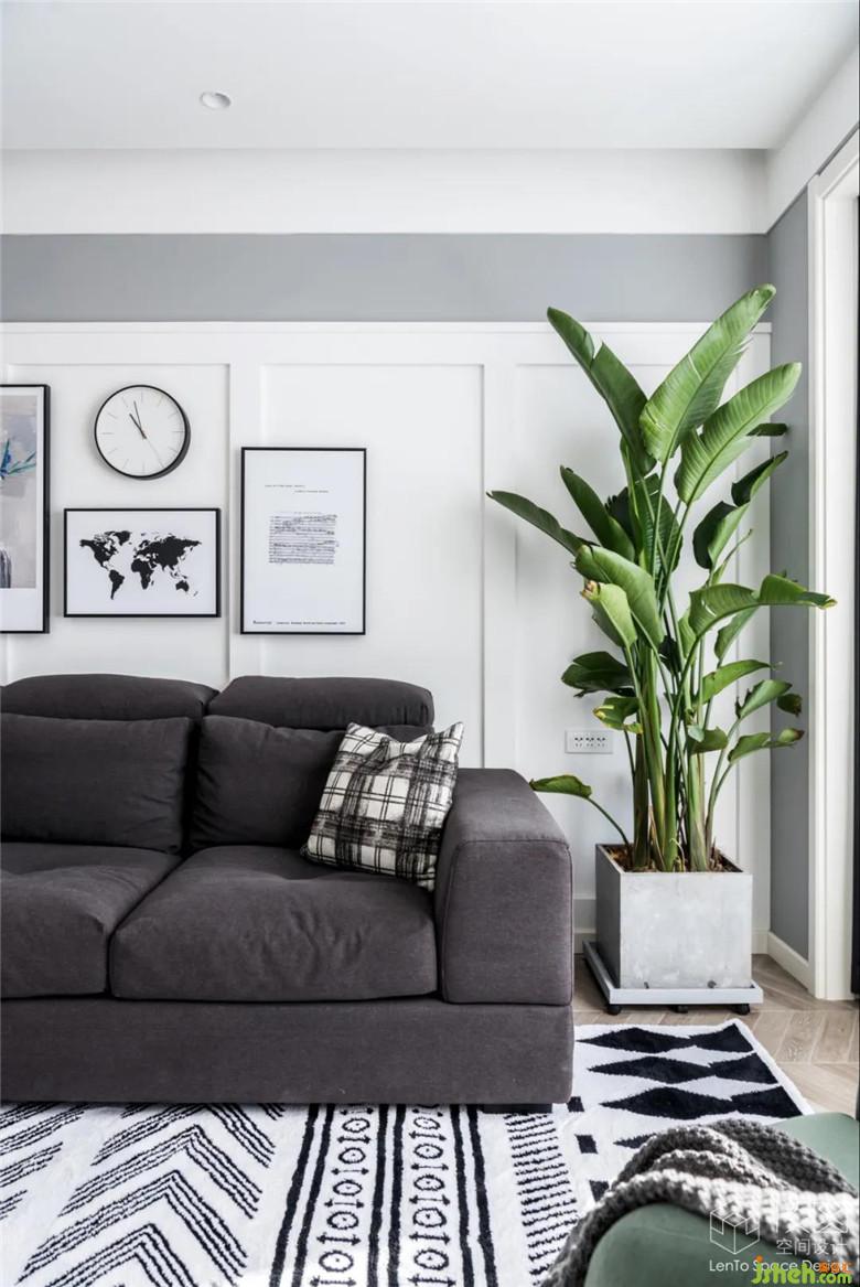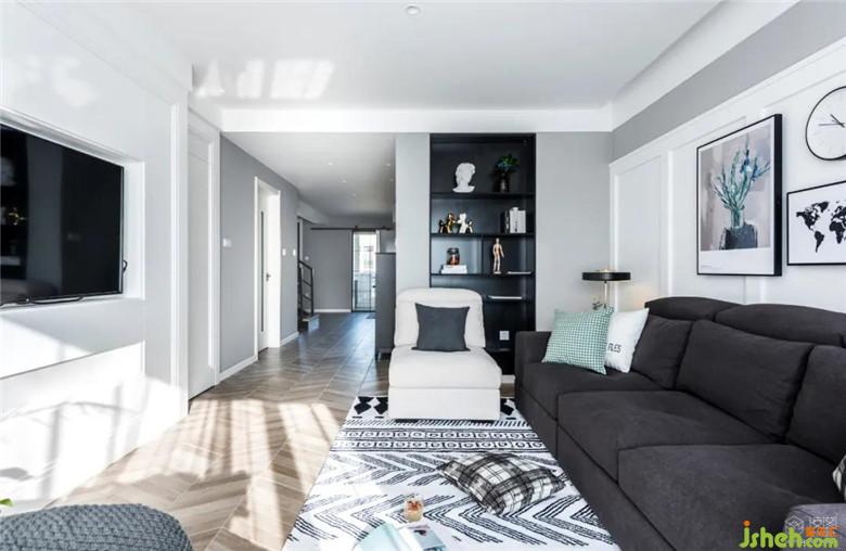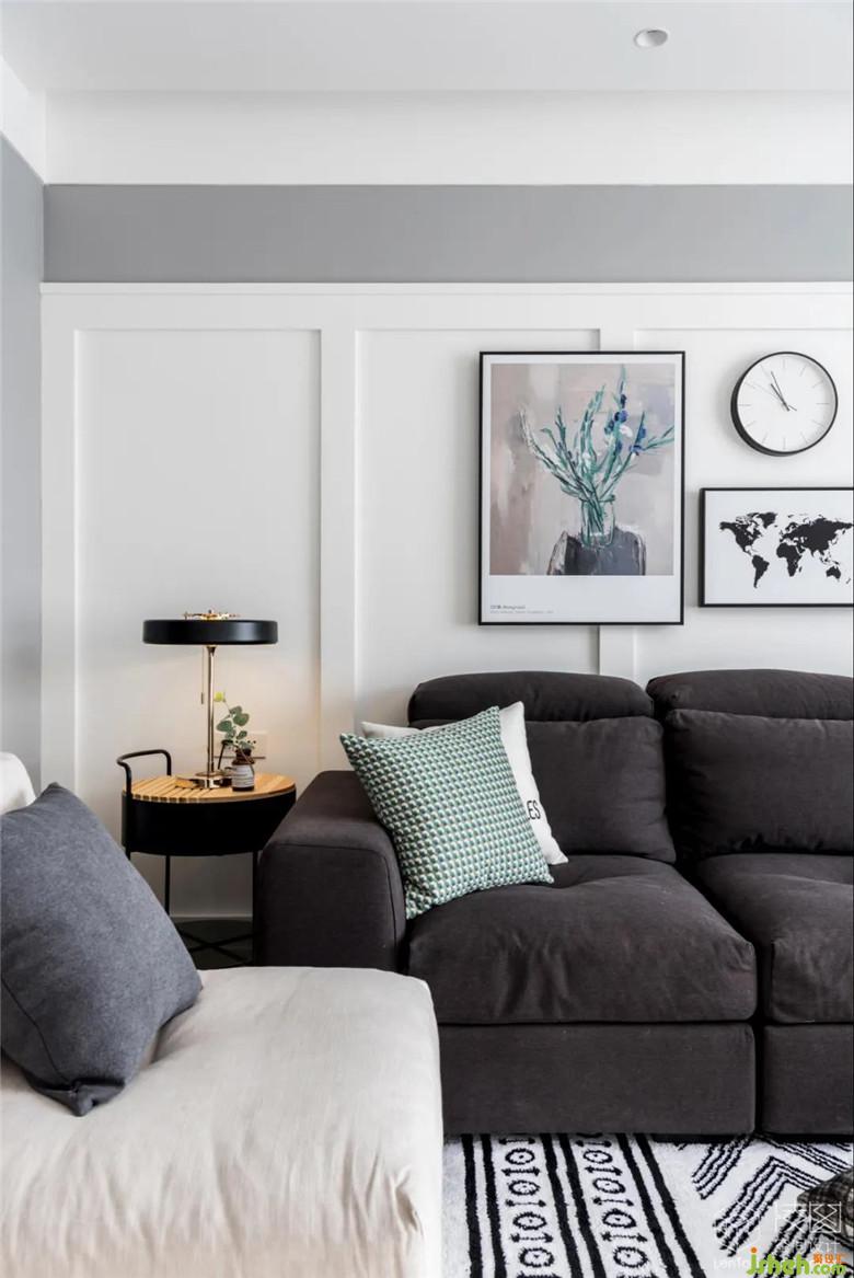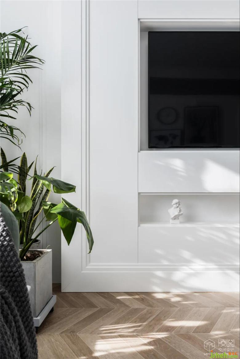 客廳的墻面整體裝修公司以白色為主色調,配以柔和的淺灰色,在小城漫長而漆黑的凜冬里,使得整個空間保持視野開闊,色彩統(tǒng)一均勻而明亮。