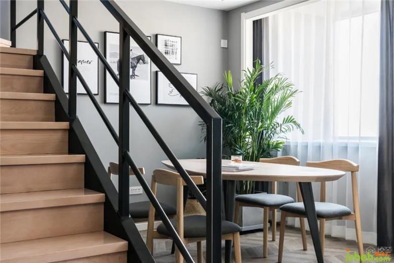 裝修公司設(shè)計(jì)師經(jīng)過對原始戶型的改造和重新梳理,將西廚、餐廳及樓梯間三位一體地組合成一個(gè)多功能的敞開空間。這一重組,使得功能利用更加高效合理,并有效地增加了入戶后的空間體量感。