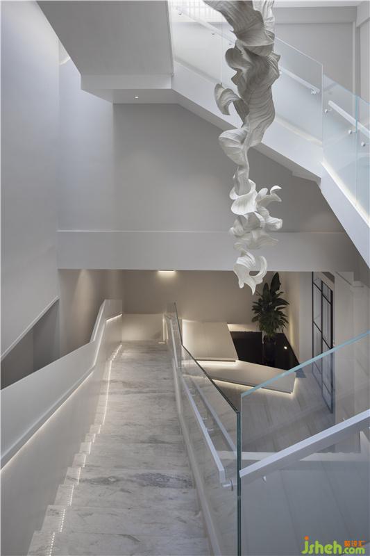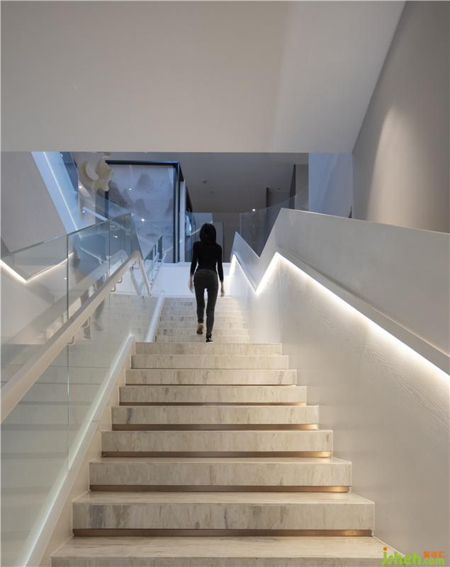空間以水、云、光為主題,撥開了會(huì)所里動(dòng)靜相宜的面紗。步入前廳,穿過屏風(fēng),蜿蜒而上的樓梯直通天面,陽光透過打開的樓板直灑而下,讓本來封閉的空間衍生出生機(jī)與希望。設(shè)計(jì)師通過大膽的改造,把每層不斷變化的樓梯與藍(lán)天陽光相融,讓室內(nèi)建筑之美完美呈現(xiàn),成為了整個(gè)空間的靈魂佛山會(huì)所設(shè)計(jì)。