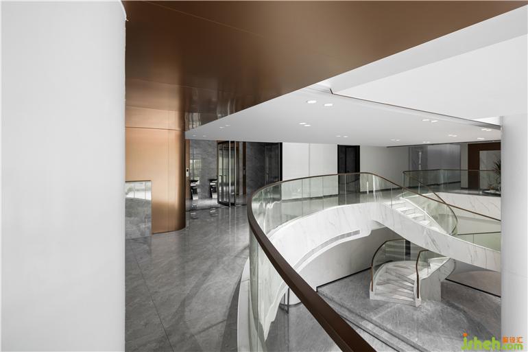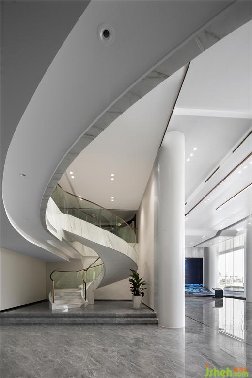 并以律動(dòng)感十足的旋轉(zhuǎn)樓梯銜接夾層的洽談及招商辦公空間,