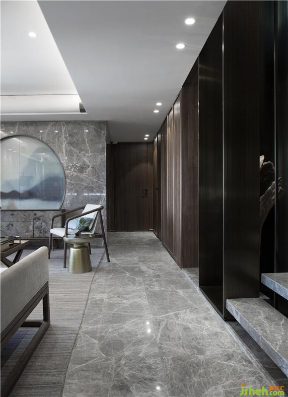 整體的基調(diào)以灰色為主,搭配胡桃木和爵士白大理石,凸顯業(yè)主的穩(wěn)重性格和品位。室內(nèi)設(shè)計師